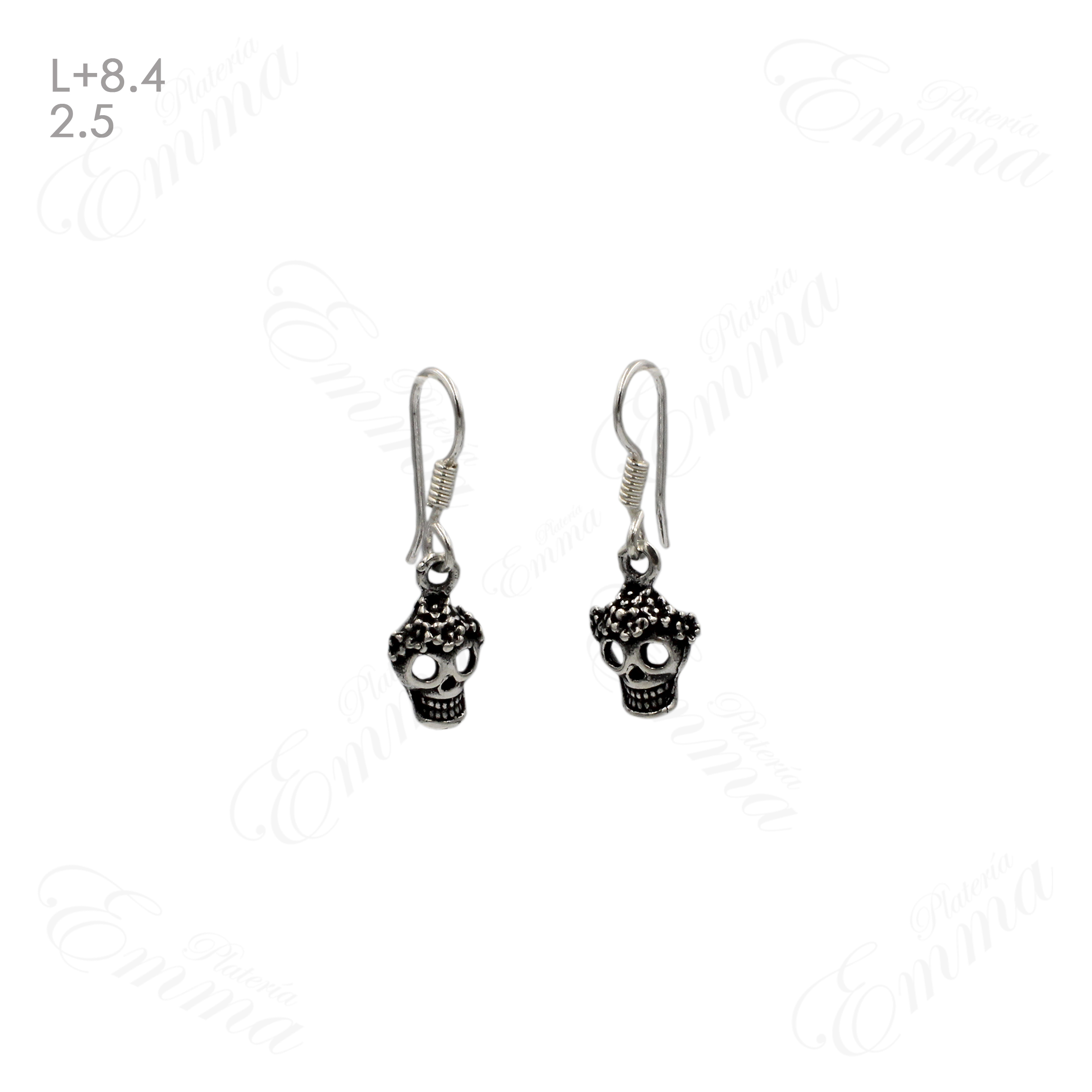 Arete con Arillo Plata Ley 0.925 Oxidado Calaverita con Flores