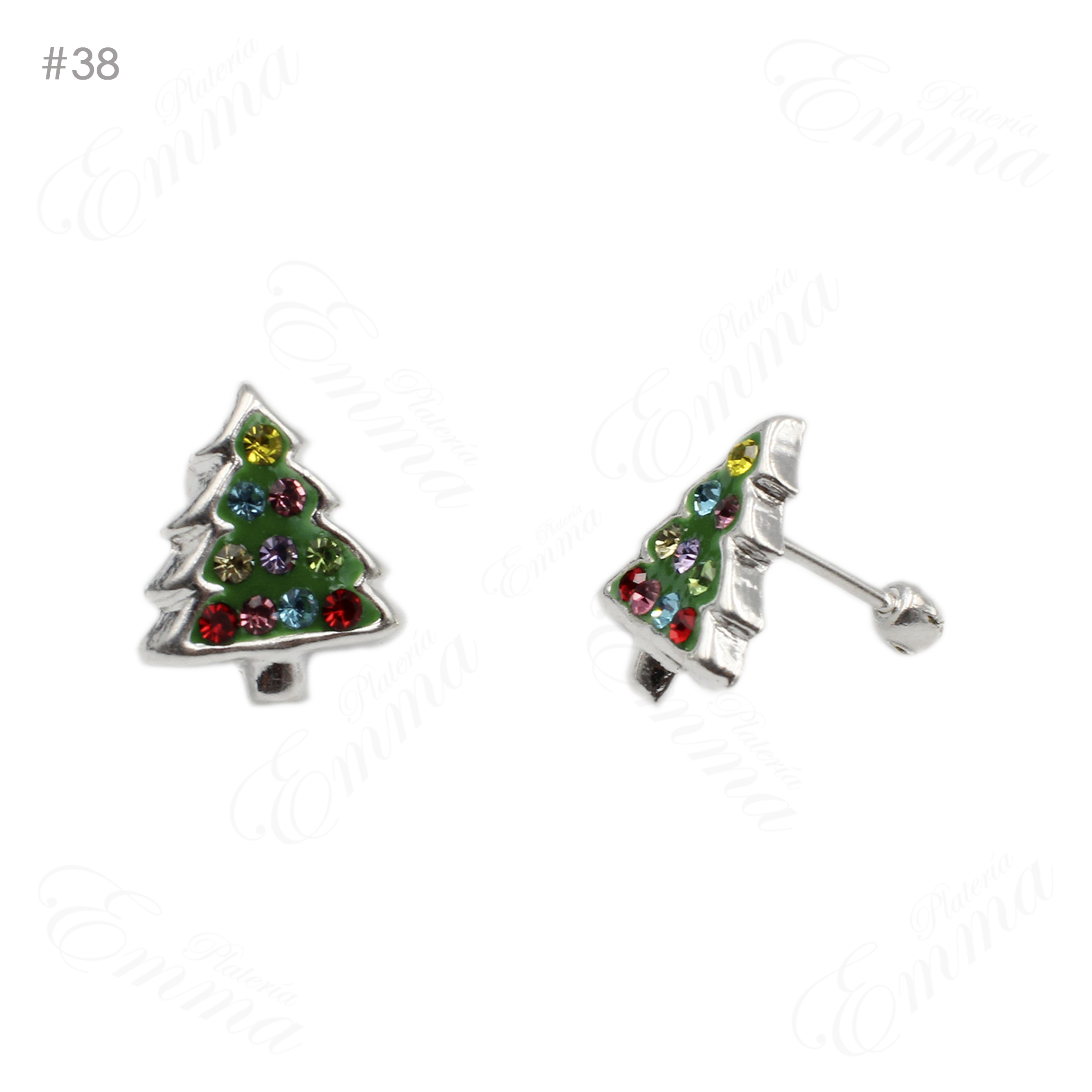 Broquel de Plata Arbolito Navideño Esmaltado con Seguro de Bolita