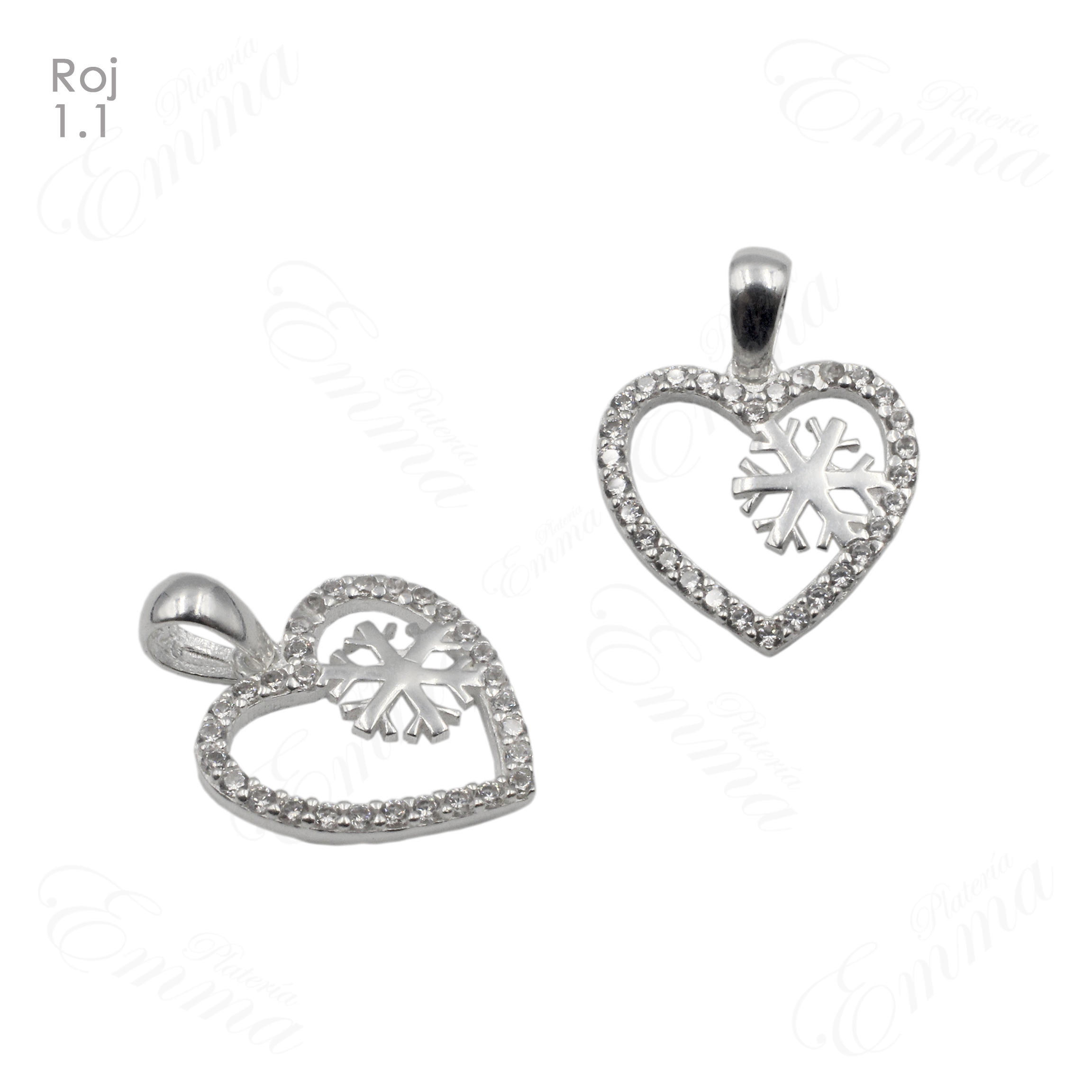 Dije de Plata Ley 0.925 Corazón Copo de Nieve