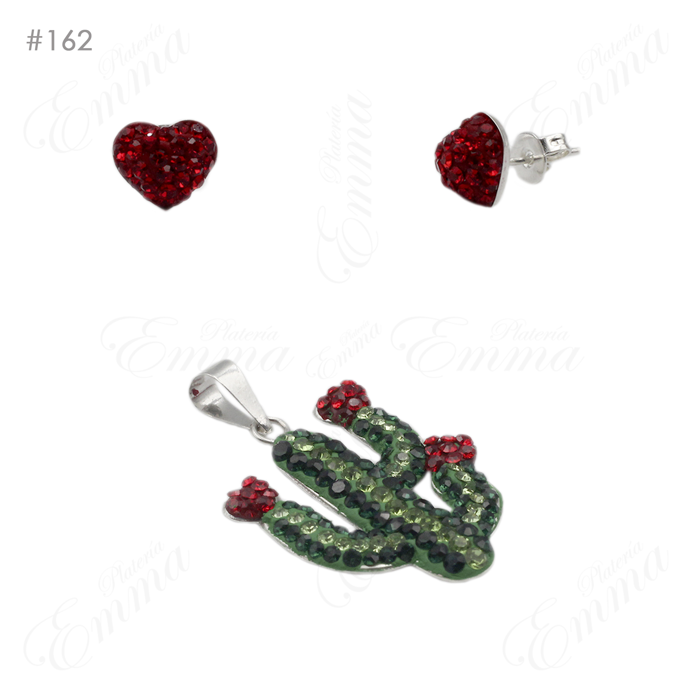 Juego de Plata Ley 0.925 Cactus Con Microcristal
