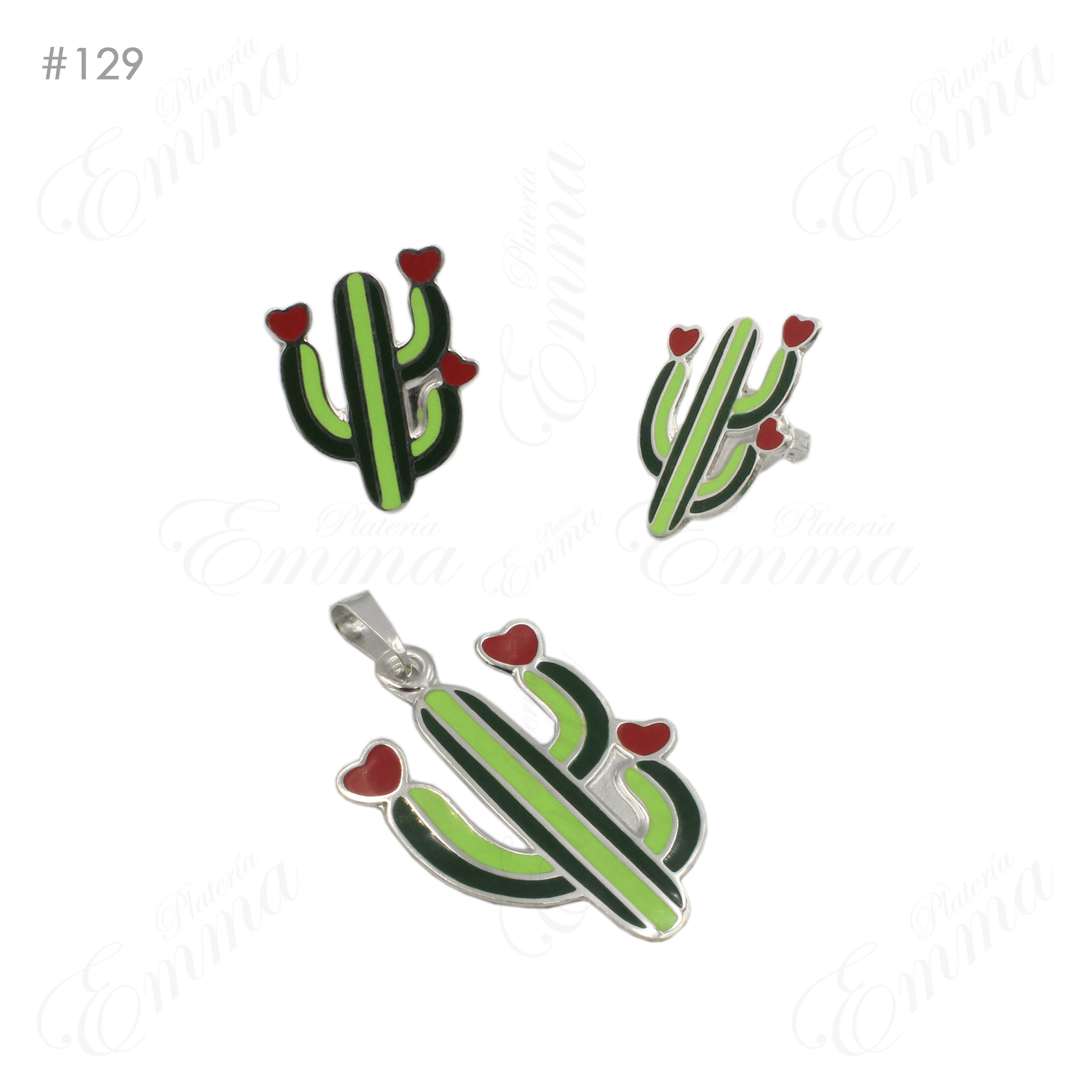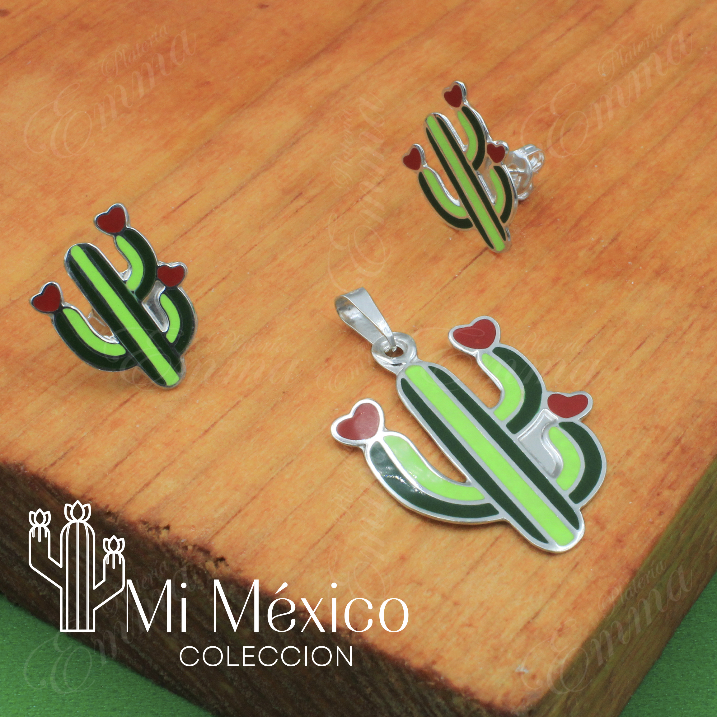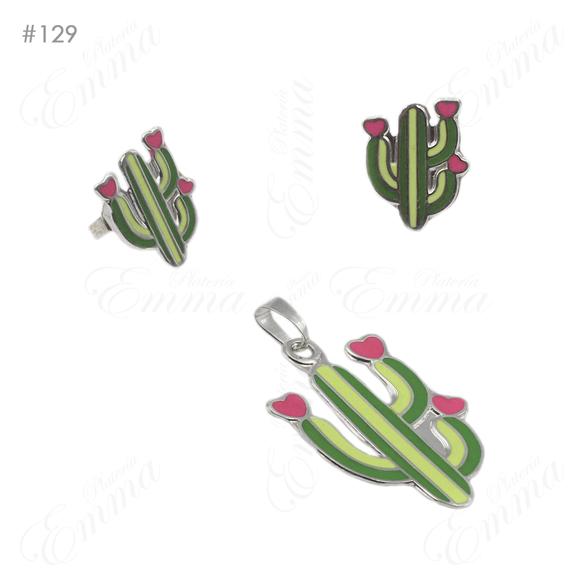 Juego de Plata Ley 0.925 Cactus Esmaltado Grande