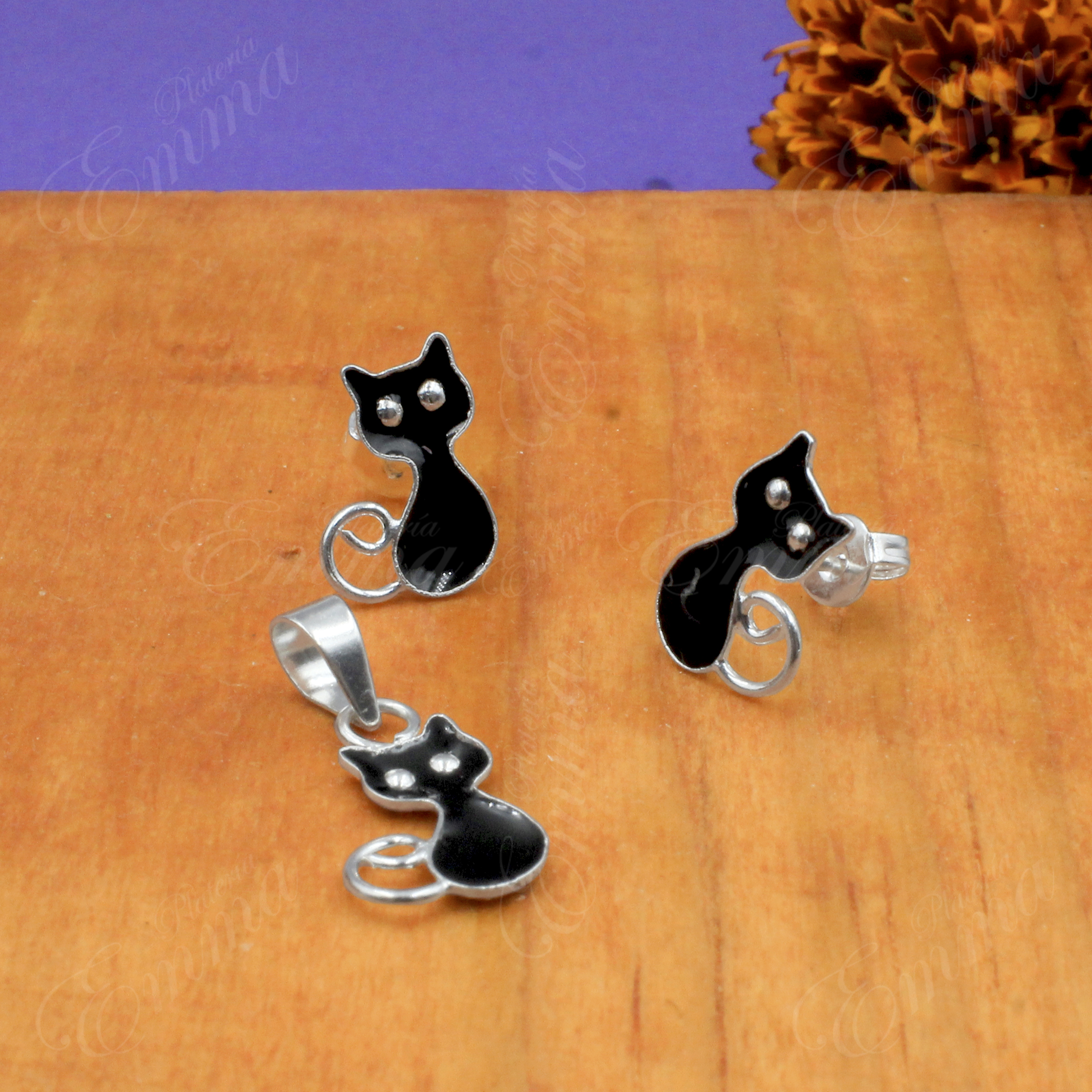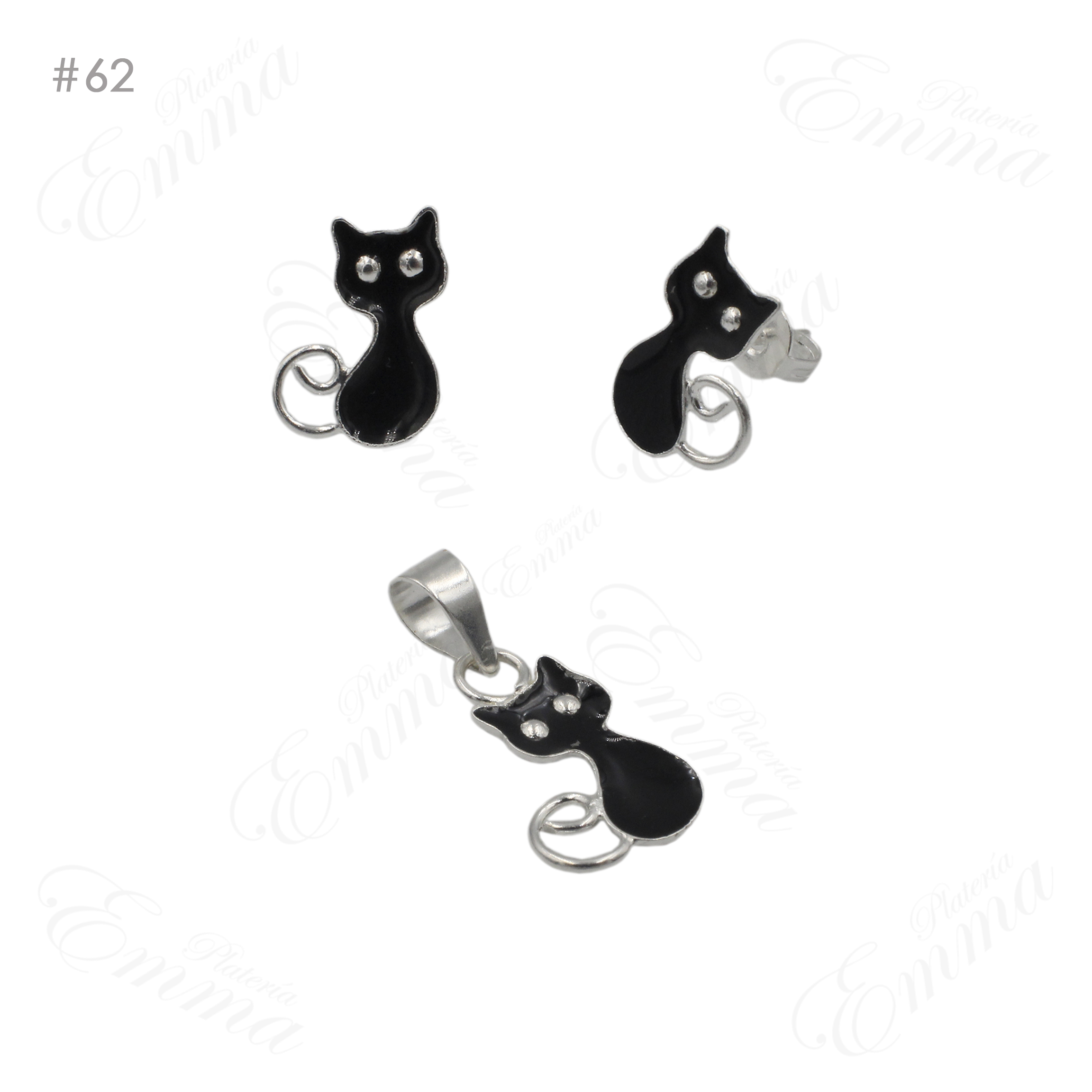 Juego de Plata Ley 0.925 Gatitos Esmaltados