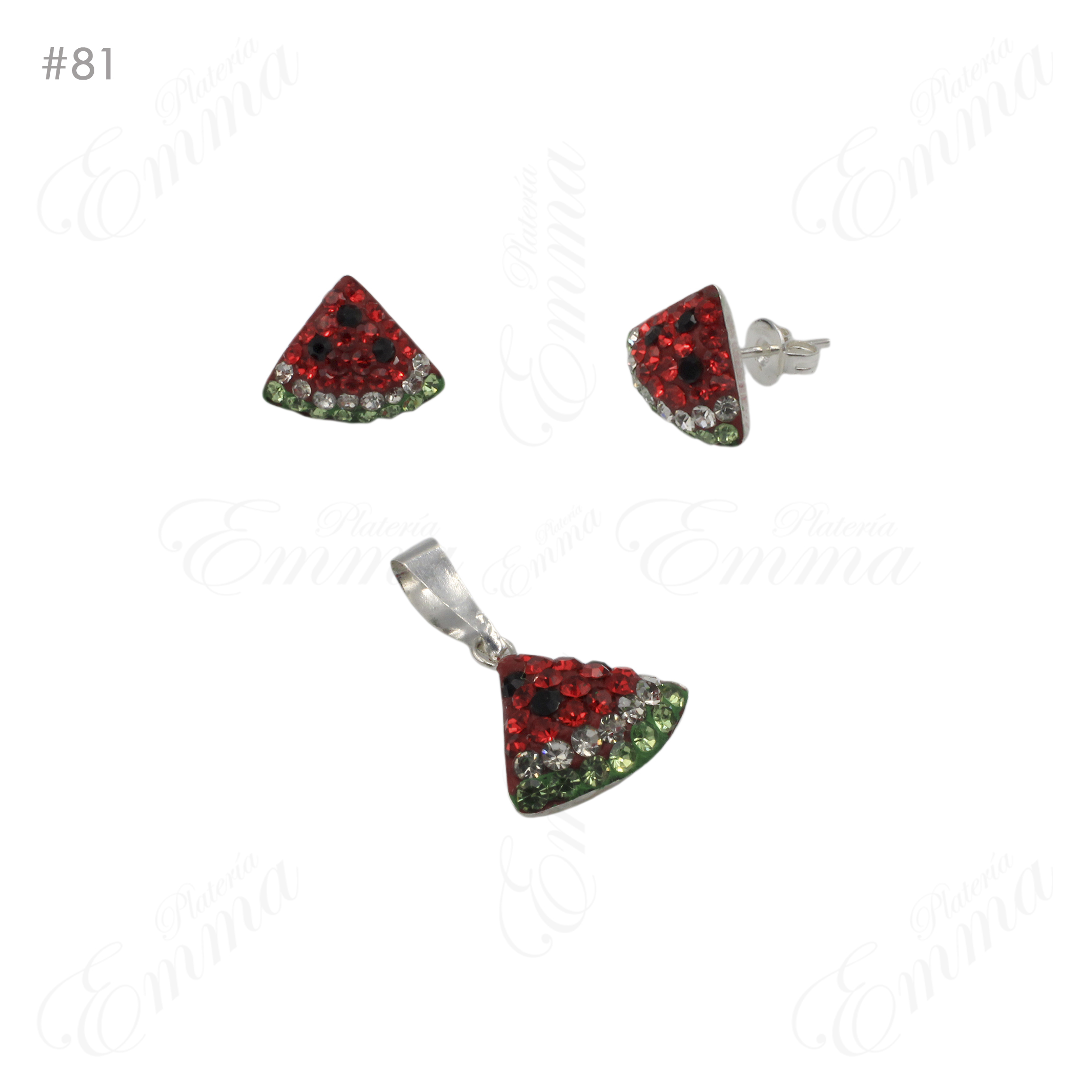 Juego de Plata Ley 0.925 Sandia Chica con Microcristal