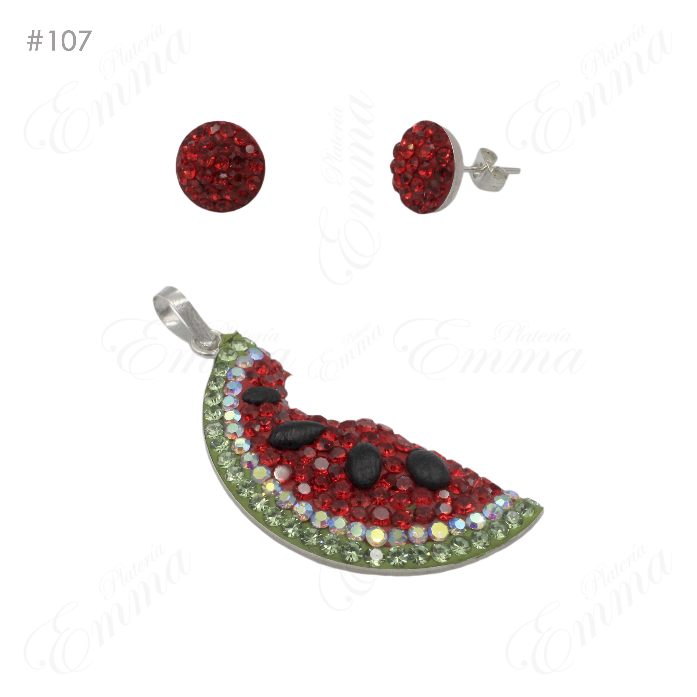 Juego de Plata Ley 0.925 Sandia con Microcristal