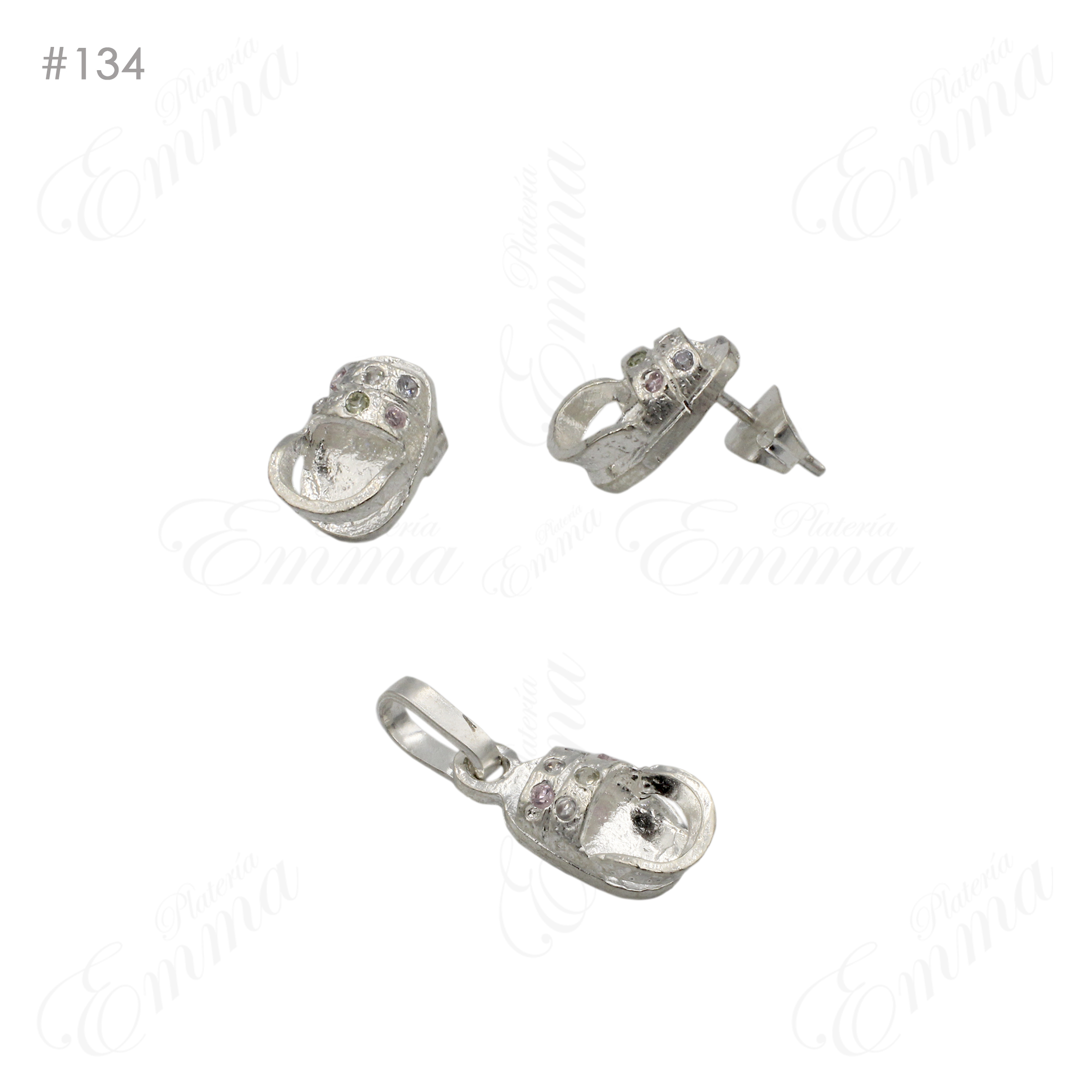 Juego de Plata Ley 0.925 Zapatito con Zirconia