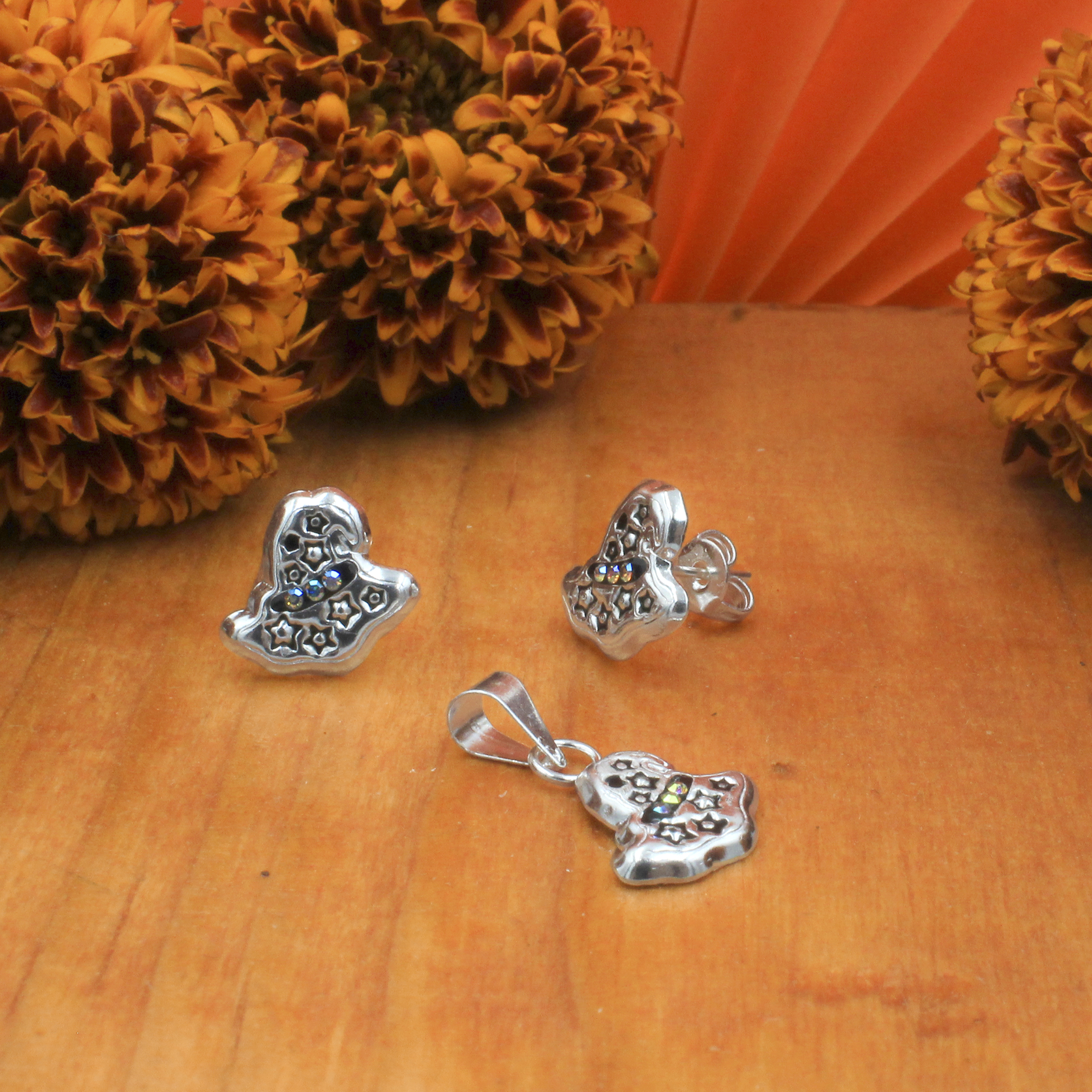 Juego Micro Cristal en forma de Sombrero de Bruja, detalles con Esmalte especial para joyería