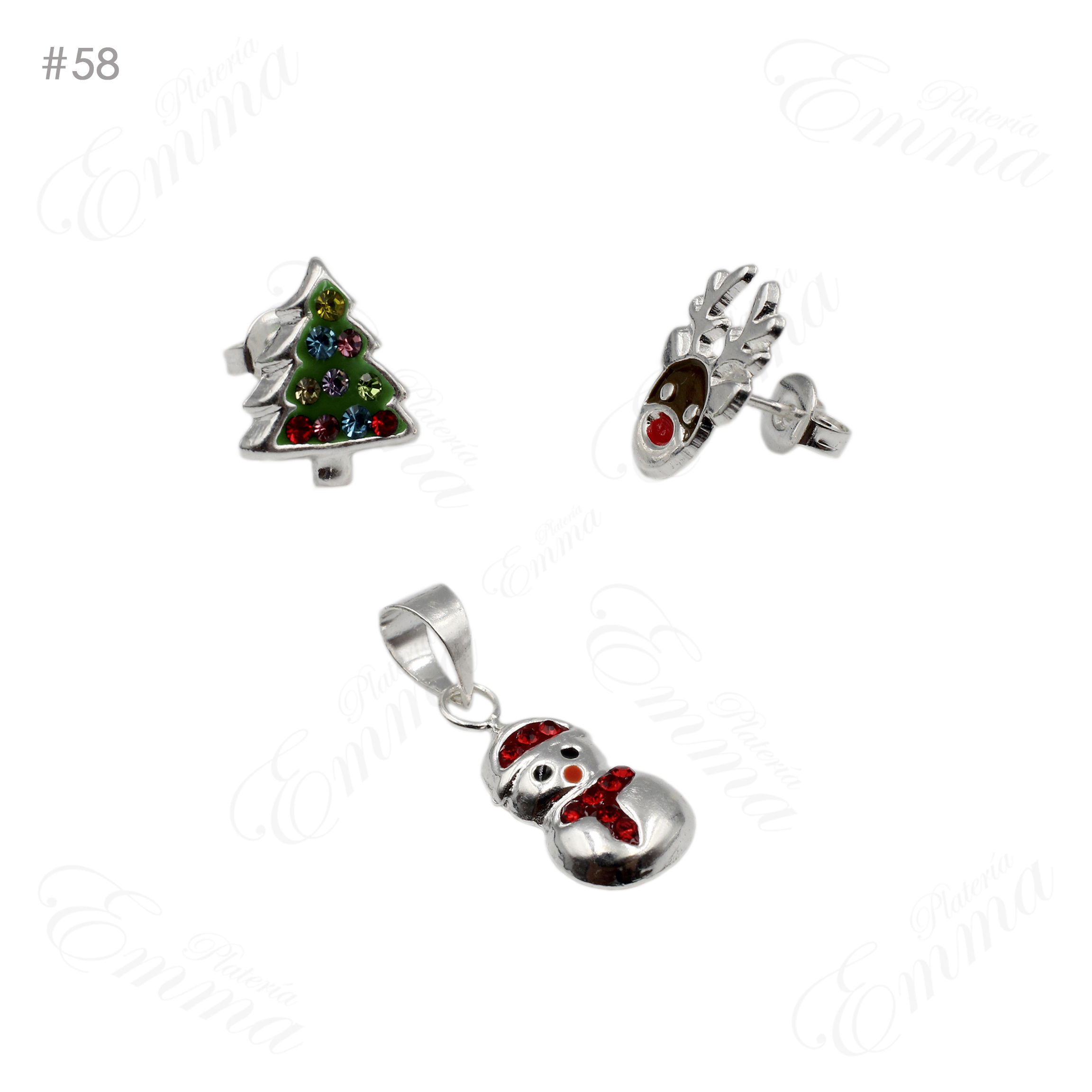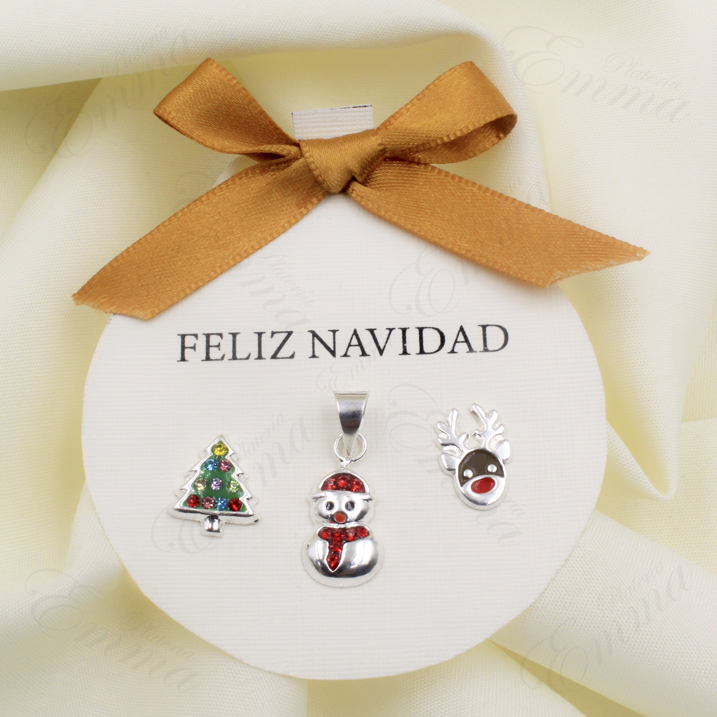 Set en Plata Ley 0.925 Árbol, Reno y Muñeco de Nieve con Esmalte