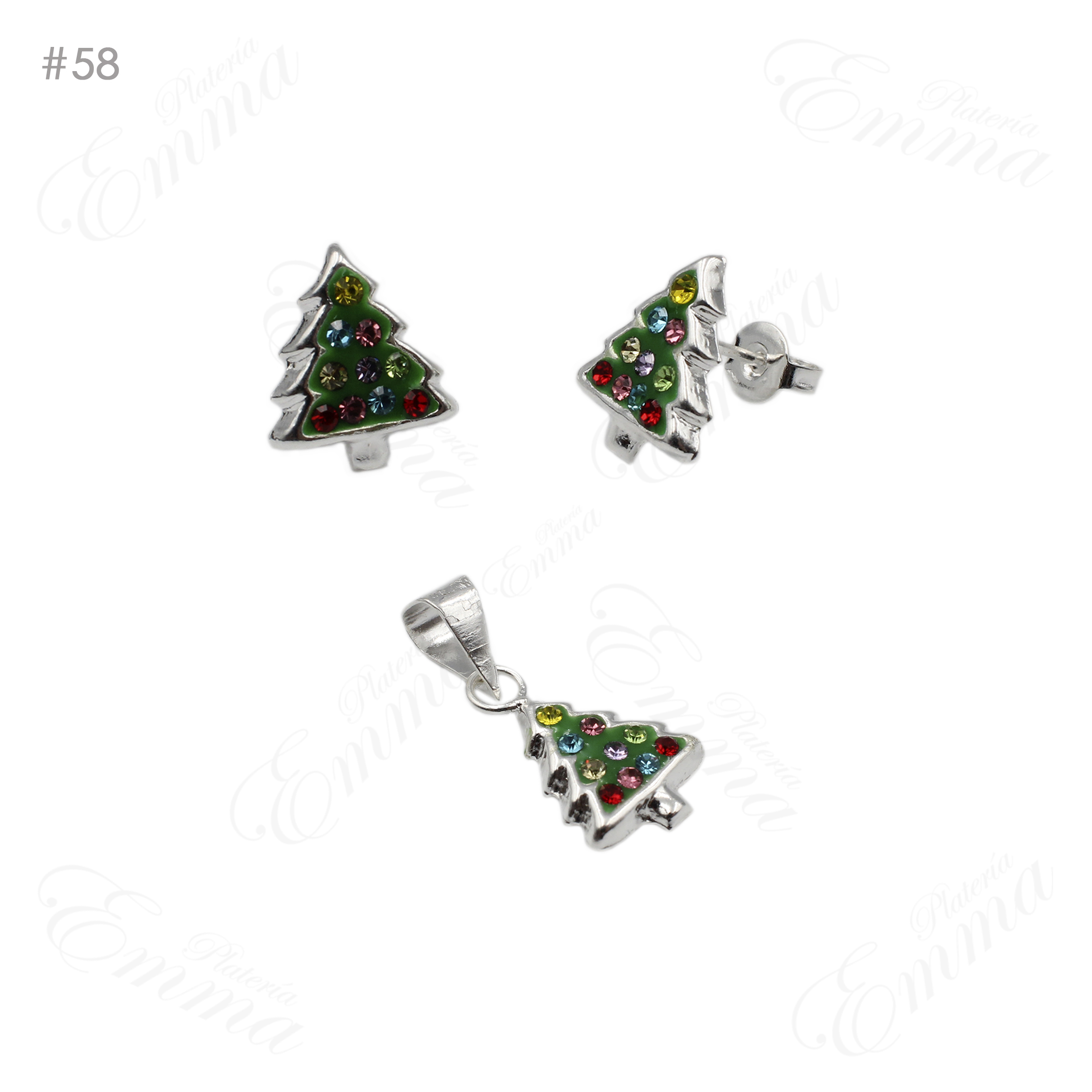 Set en Plata Ley 0.925 Arbolito Navideño Esmaltado