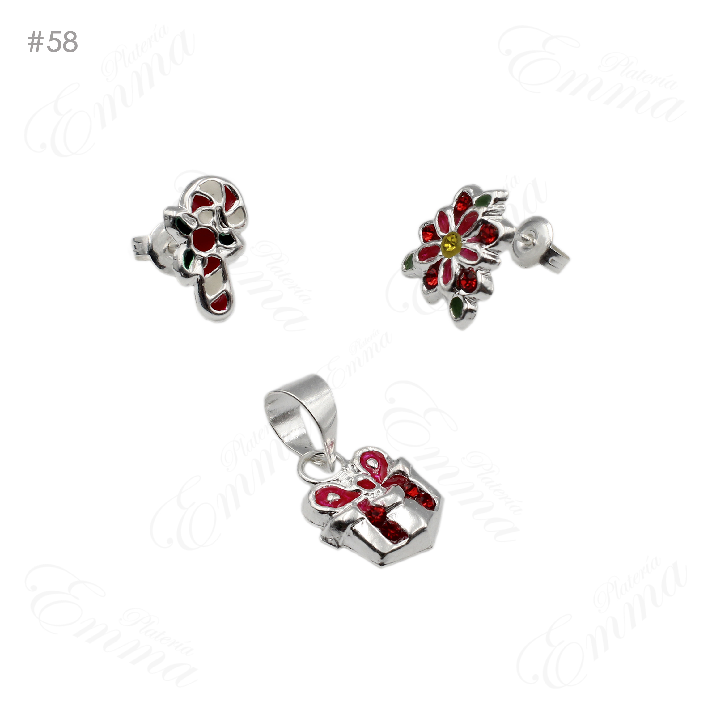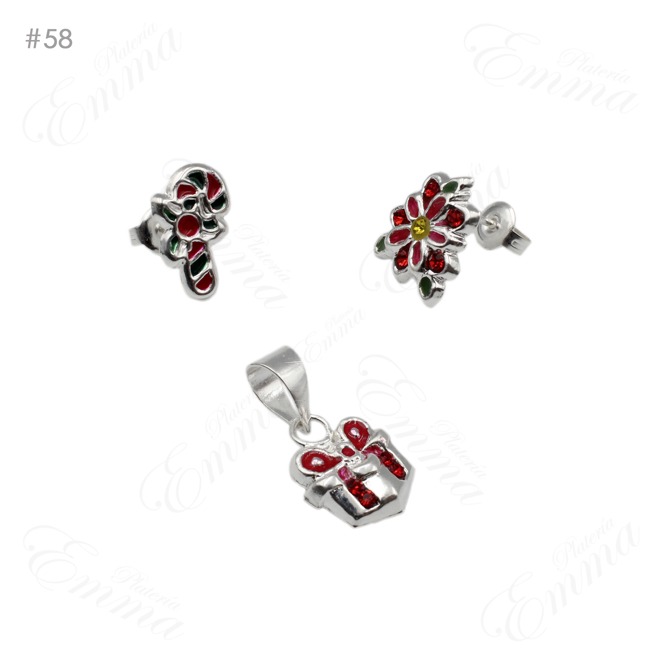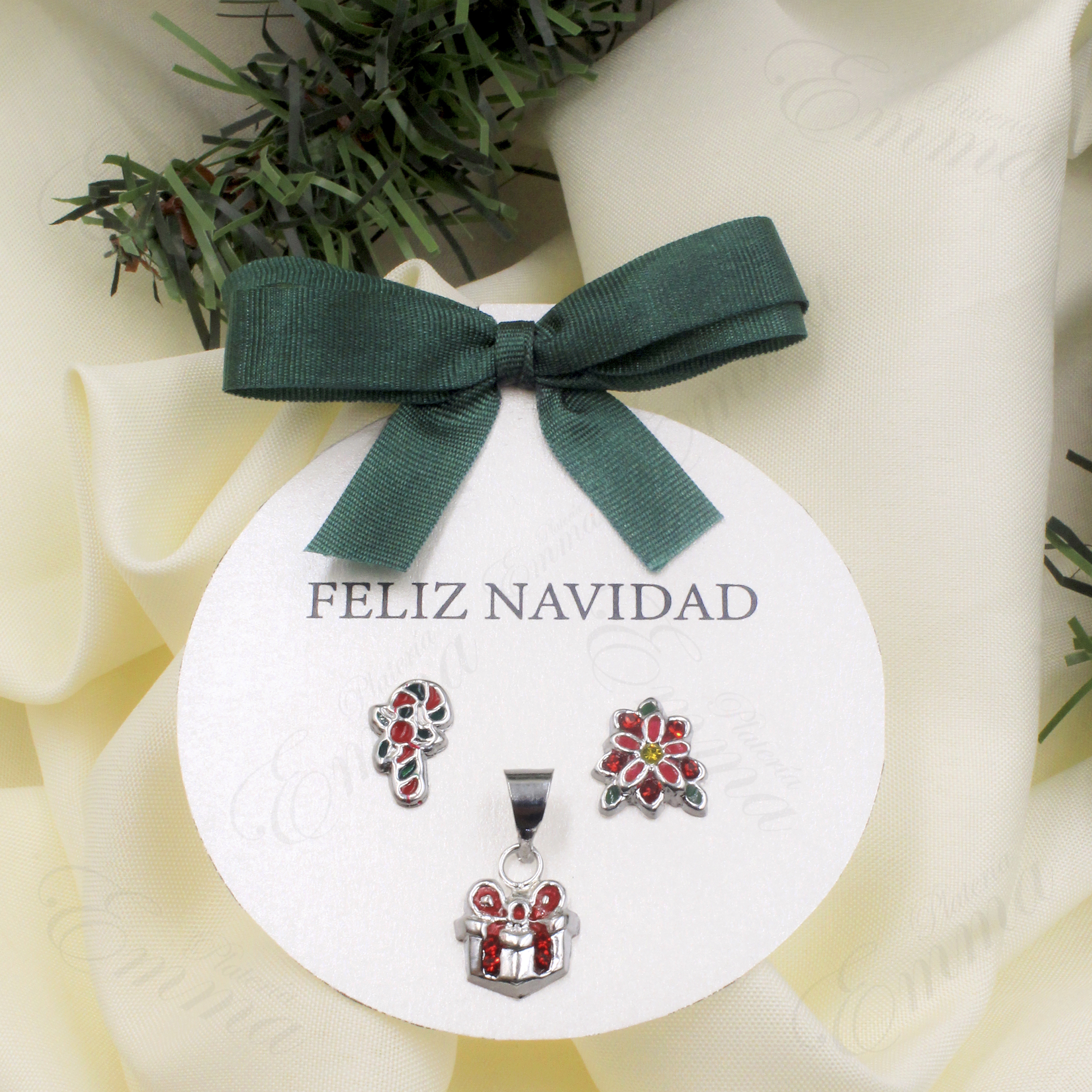 Set en Plata Ley 0.925 Bastón, Noche Buena y Regalo Esmaltado