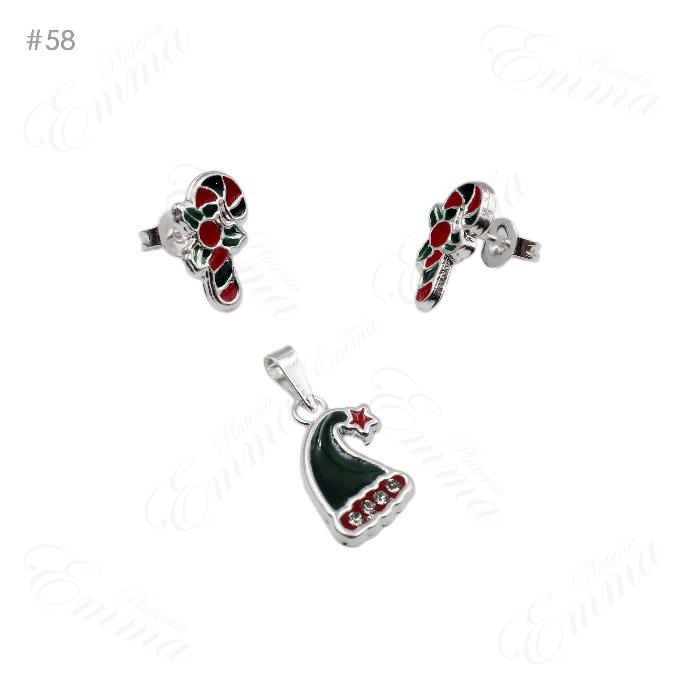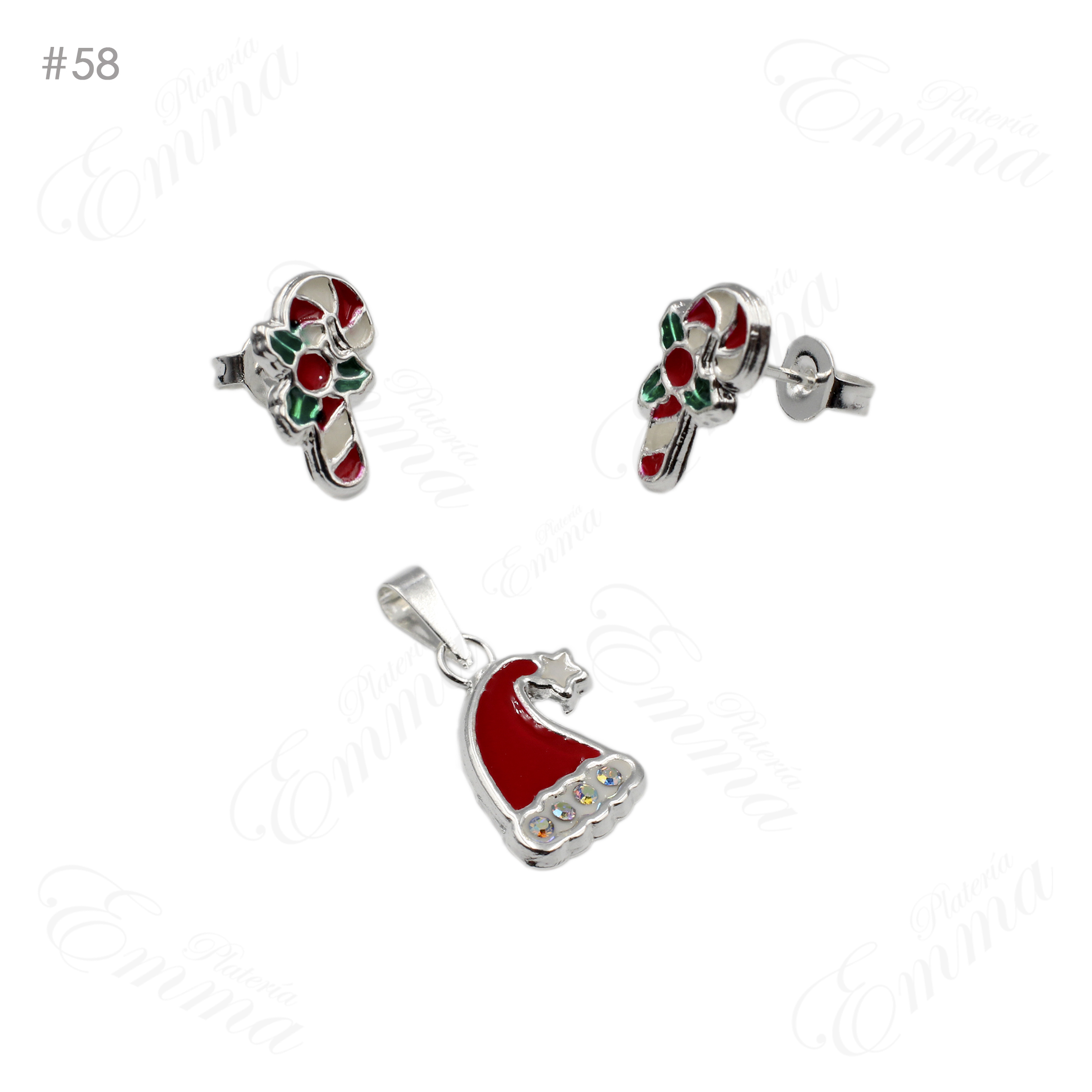 Set en Plata Ley 0.925 Gorro con Basto Navideño Esmaltado
