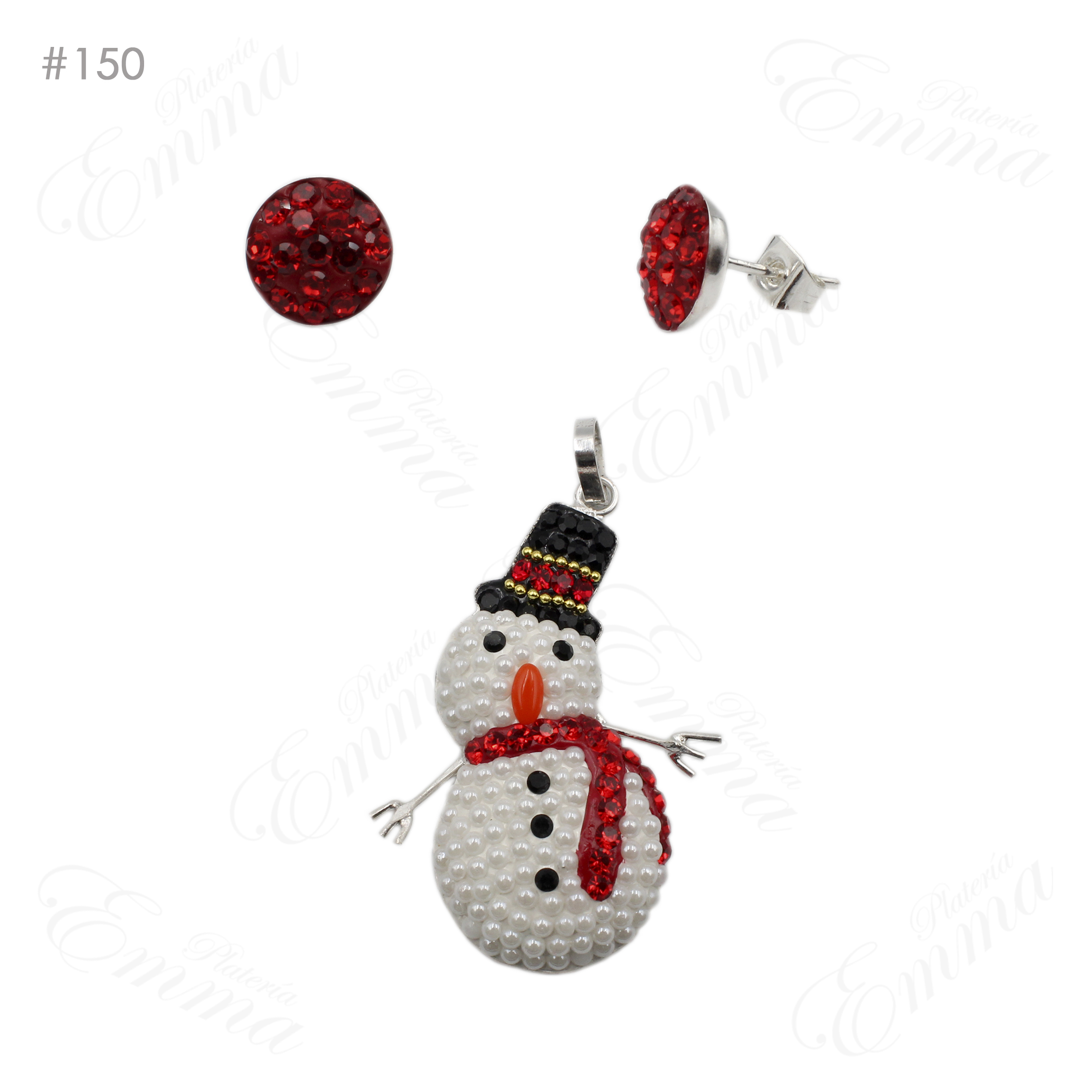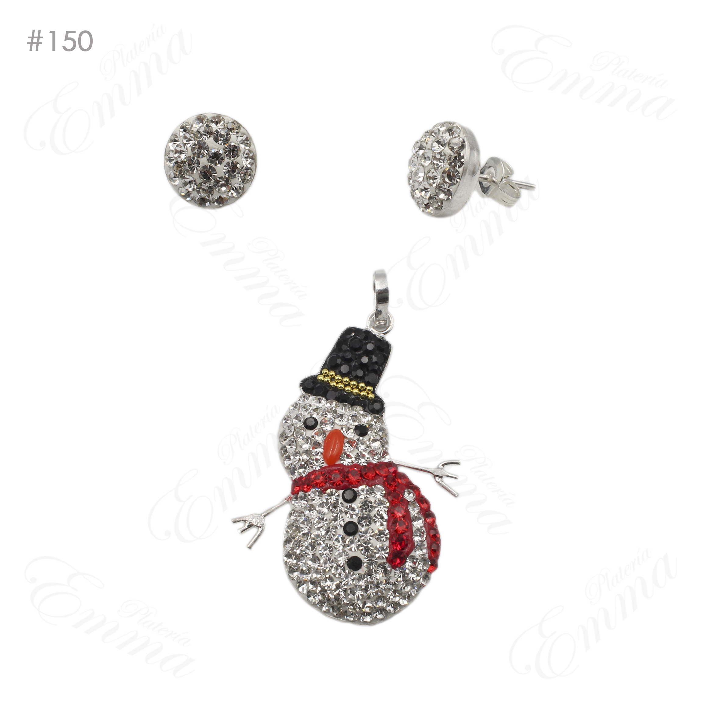 Set en Plata Ley 0.925 Muñeco de Nieve con Bufanda Micro Cristal