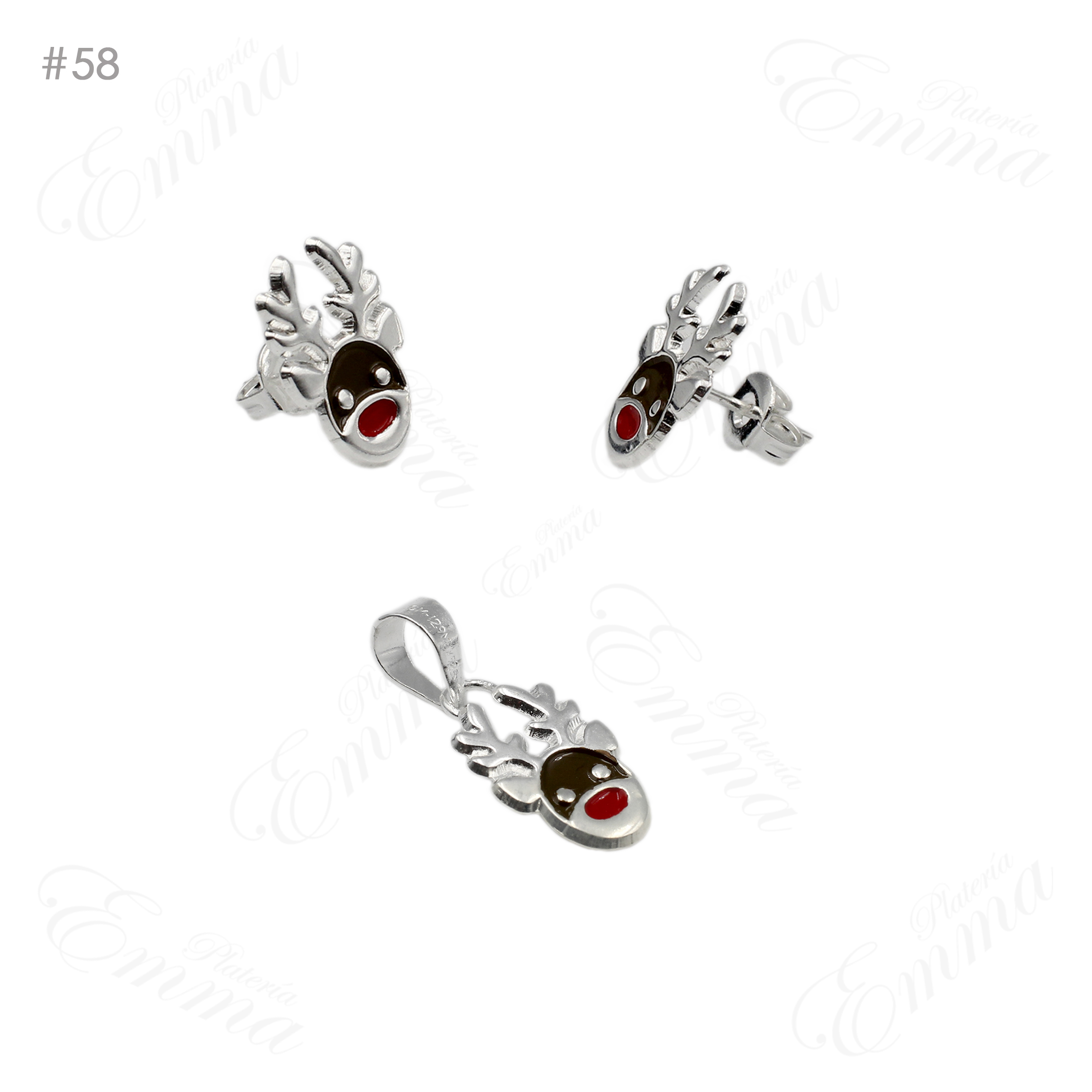 Set en Plata Ley 0.925Reno Navideño Esmaltado